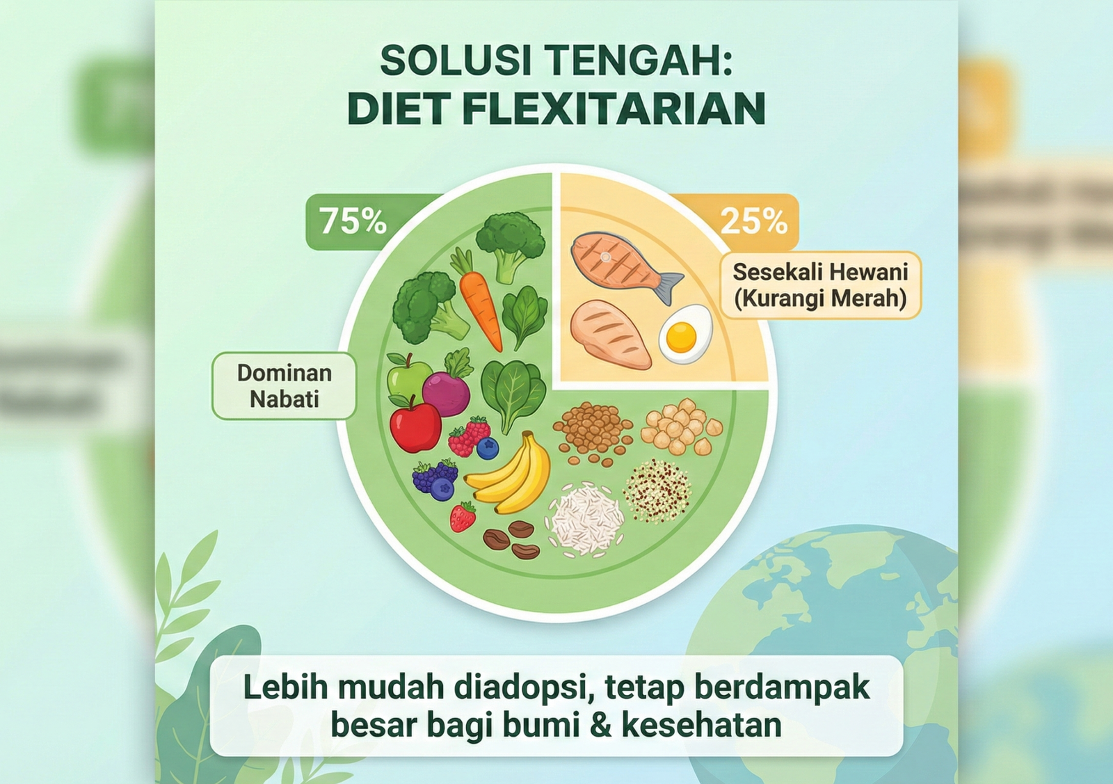 Pola makan fleksibel, dominan nabati tapi masih sesekali mengonsumsi hewani.